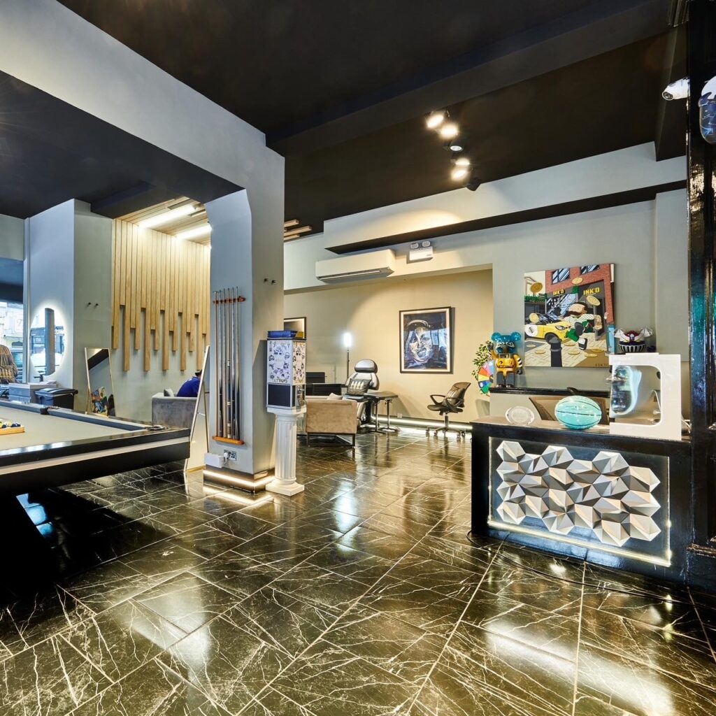 The studio sits in Fulham, a residential and commercial district in southwest London that lies outside the usual tourist grid yet remains accessible by tube and bus. Clients arrive to find a space that blends elements of a lounge, gallery, and clinic. Pool tables, a relaxed waiting area, and contemporary decor help soften the nerves many first-time clients bring to appointments. Private rooms and clear hygiene protocols signal that professional standards match aesthetic choices.
